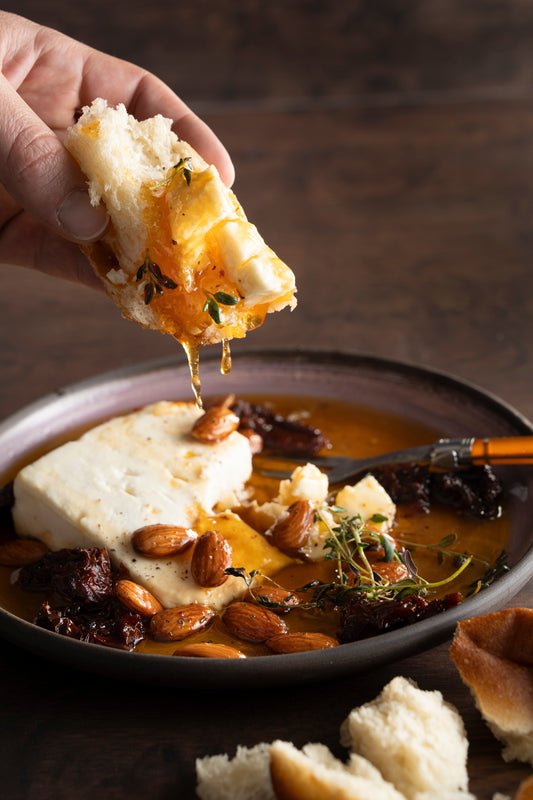 Creamy, salty, tangy, sweet and hot. A simple entertaining dish that hits every taste sensation. Serve this for your next party appetizer or just make it dinner with a glass...