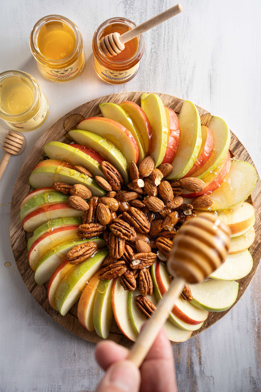 Shanah tovah! Apple with Nuts and Honey(apple, nuts + honey)Makes 1 What you need: 1 apple, honeycrisp or granny smith½ cup mixed nuts, roasted and salted1 Savannah Bee Company Artisanal...