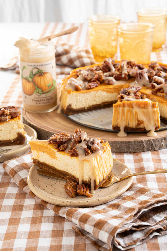 We love a mashup, and this pumpkin pie cheesecake combines two of our favorite desserts, highlighting our pumpkin spice whipped honey, of course. This pumpkin cheesecake is the perfect dessert...