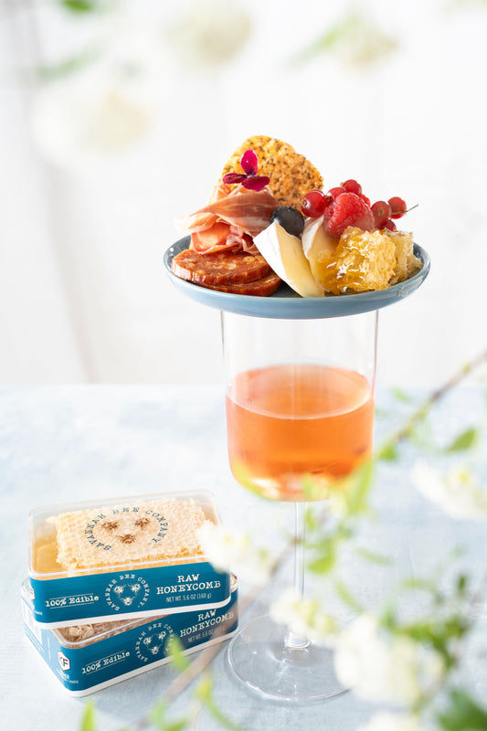 Add a patriotic touch to your grazing board with red-, white-, and blue-themed ingredients. Our honeycomb is the perfect pair to these festive fruits, cheeses, and charcuterie. For an extra...