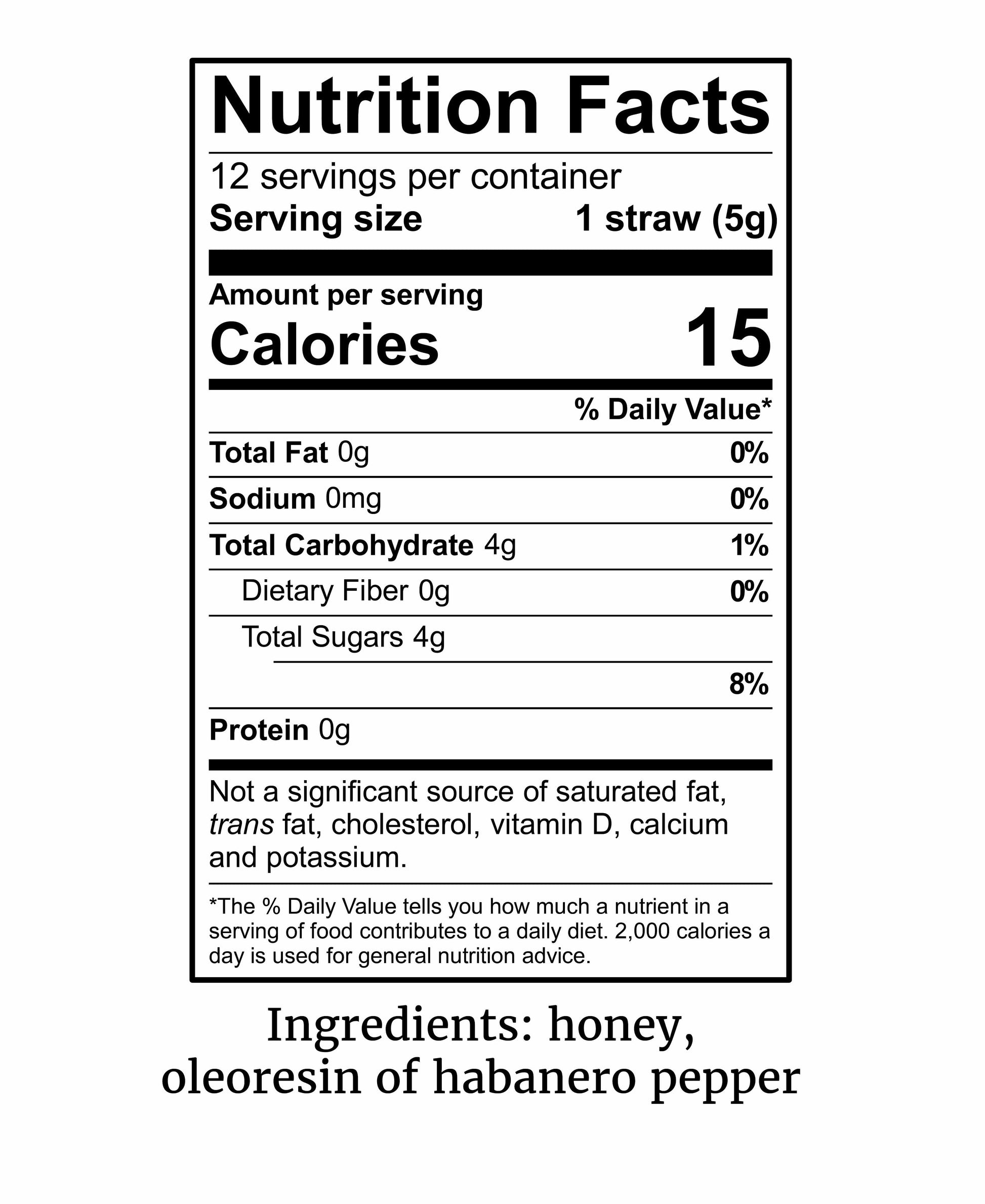A honey straw that brings the heat! SBC Fire Sticks are a smoother (only 70% the heat) version than our regular Hot Honey to spark your taste buds. Fire up picnics and takeout with this sizzling grab-and-go condiment, boost your body before a workout, or savor anytime for a flaming sweet, healthy treat.